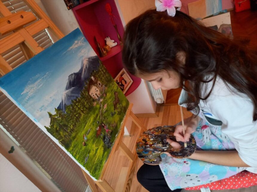 Теа, која е петто одделение, а која не само што слика, туку и разговара како возрасна ни откри од каде и е се родила желбата за сликање, дека во школо сите и се петки и дека и покрај обврските наоѓа време да посетува курсеви по јазици, да слуша музика и да се дружи со другарките.