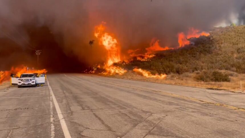 🚨 UPDATE: The new Los Angeles Hughes Fire is now 5000+ acres with zero containment. Powerful winds creating fire tornados. pic.twitter.com/p5rIiEBpm5