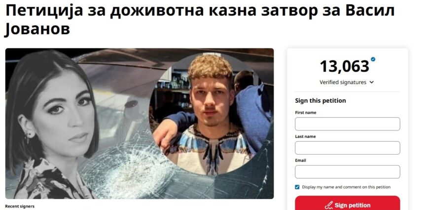 Граѓаните на социјалните мрежи потпишуваат петиција во која бараат Васил Јованов, кој ја уби Фросина Кулакова на „Партизанска“ да добие доживотна казна затвор.