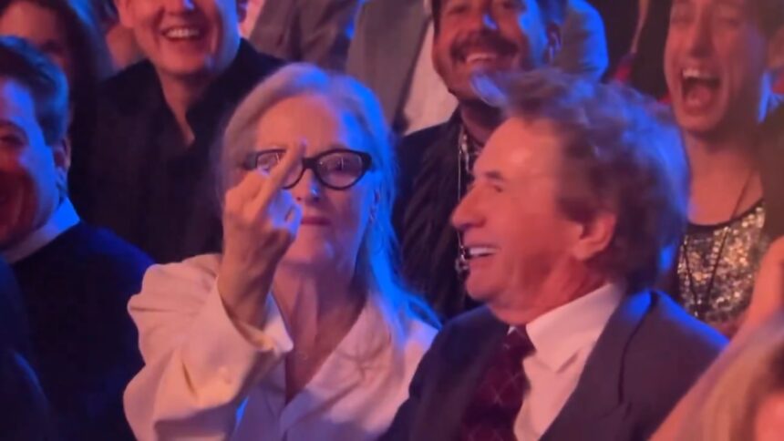 „Зборуваме за тебе, Мерил Стрип“, рече водителката додека камерата се насочуваше кон познатата актерка. Таа потоа го крена средниот прст кон камерата, а публиката се насмеа.