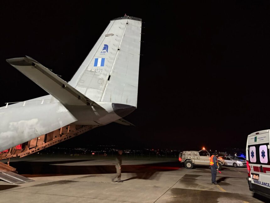 Од грчката амбасада во Скопје на Фејсбук објавија фотографии од аеродромот, објаснувајќи дека со Ц-130 авион на грчкото воздухопловство се врши лет за медицинска евакуација со тројца пациенти на интензивна нега „кои ќе добијат специјален третман во воената болница 401 во Атина“.