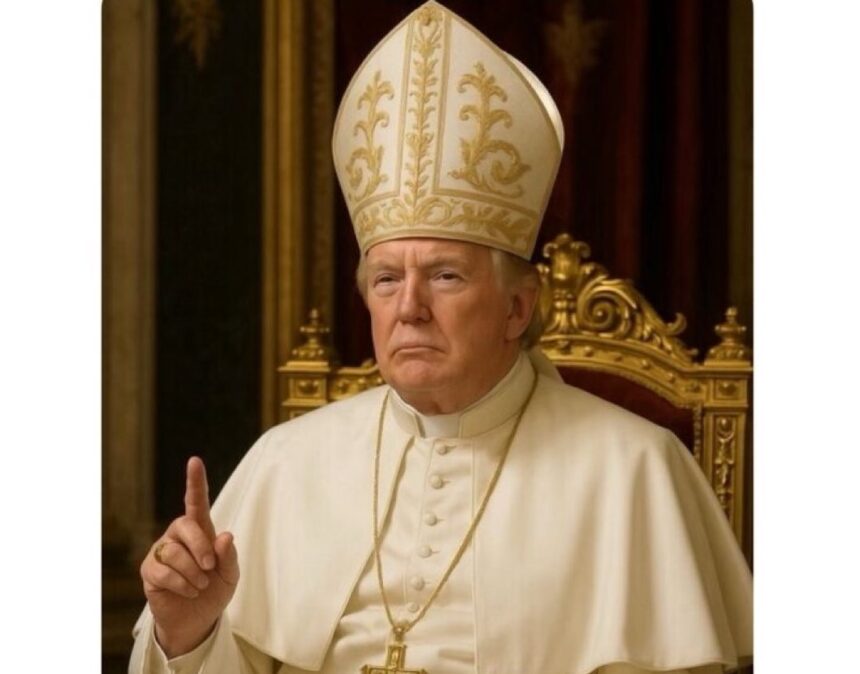 Една недела откако присуствуваше на погребот на папата Франциск, Трамп на социјалните мрежи сподели слика од себе генерирана од вештачка интелигенција облечен во белата папска одора.