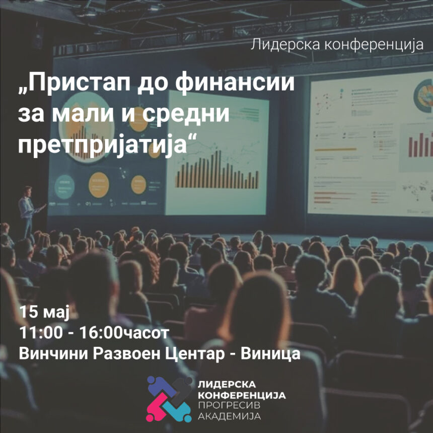 Во организација на Фондација Прогресив Академија, во Винчини Развоен Центар – Виница, ќе се одржи Прогресив Лидерска Конференција на тема „Пристап до финансии за мали и средни претпријатија“, на 15 мај (четврток) со почеток во 11:00 часот.