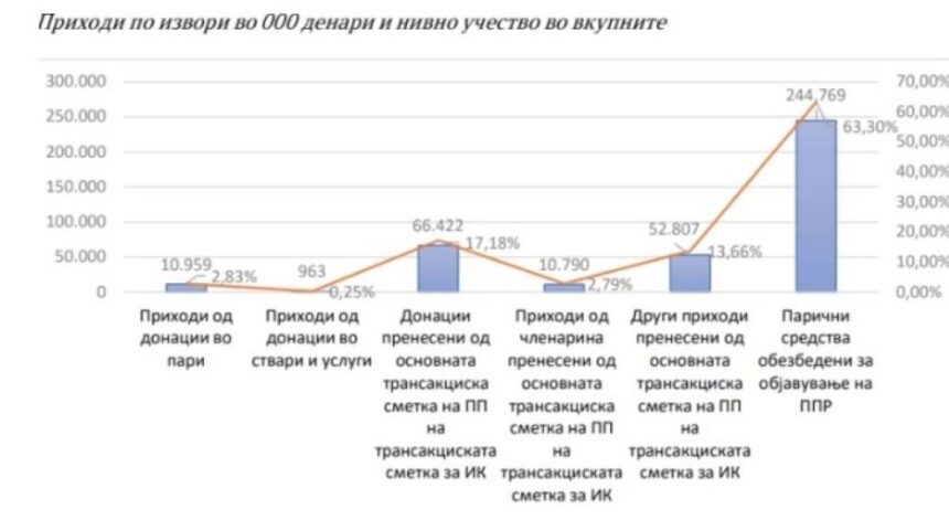 – Најголемо учество во вкупните приходи има Коалиција ТВОЈА МАКЕДОНИЈА предводена од ВМРО ДПМНЕ (37%), по што следат Коалиција за ЕВРОПСКА ИДНИНА предводена од СДСМ (25%), Коалиција ЕВРОПСКИ ФРОНТ предводена од