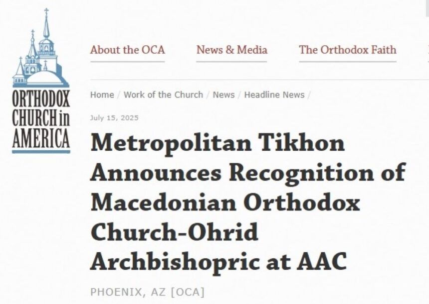 Оваа одлука, како што пренесува Литургија.мк, беше соопштена од страна на поглаварот на Православната црква во Америка, архиепископот Вашингтонски и митрополит на сета Америка и Канада г.г. Тихон во неговиот извештај од 15 јули 2025 година, претставен пред 21-от Сеамерикански црковен собор, кој оваа недела се одржува во Феникс, Аризона, САД.
