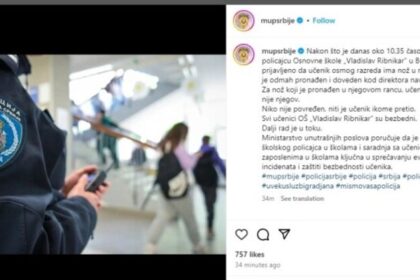 Српското Министерство за внатрешни работи потврди дека кај ученик од основното училиште…