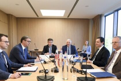 Пендаровски ги пречека Борел, Вучиќ и Курти: Работна сесија од преговорите Белград-Приштина