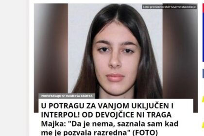 Тргна на училиште и ја снема, трагата ѝ се губи на „Партизанска“ – вели мајката на исчезнатата Вања Ѓорчевска (14) од Скопје