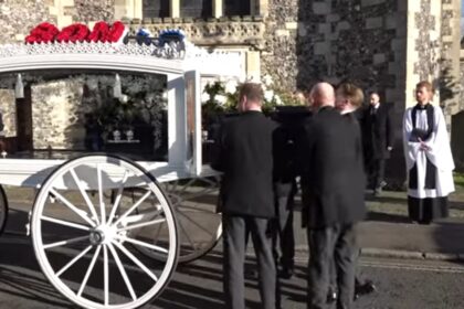 (Видео) Ковчегот на пејачот донесен во бела кочија – Солзи и тага на погребот на Лиам Пејн