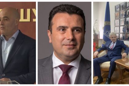 Актуелниот премиер Димитар Ковачевски, екс премиерот Зоран Заев и лидерот на ДУИ,…