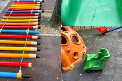 (Видео) Срамно и за секоја осуда, погледнете како млади скопјани уништуваат реквизити во детски парк