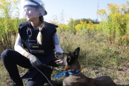Женски тимови со службени кучиња помогаат во хуманитарните напори за деминирање во Украина