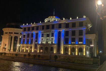 Зградата на Министерството за надворешни работи (МНР) вечерва е осветлена во боите…