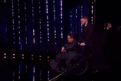 Цела сала го поздрави со громогласен аплауз, Мајкл Џеј Фокс во инвалидска количка се појави на сцената на БАФТА