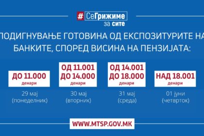 Во тек е етапната исплата на пензиите за месец мај, информираат од…
