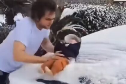 (Видео) Татко со бебе чисти снег од автомобил, сега е под истрага на полицијата