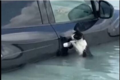 (Видео) Како се спасуваше мачка од поплавите во Дубаи