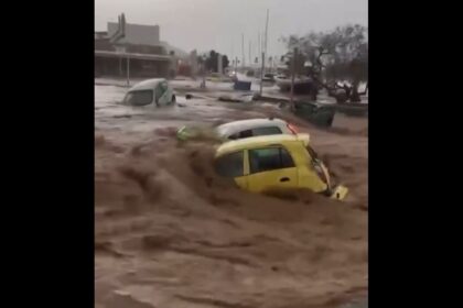 (Видео) Улиците станаа реки во Миконос и Парос – Црни облаци над Грција