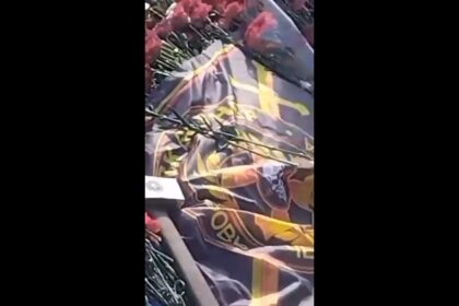 На едно од местата каде луѓето положуваат цвеќе на знамето на Вагнер…