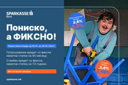 Шпаркасе Банка ја стартува годината со нова промотивна понуда, „Пониско, а фиксно“ – Станбен и потрошувачки кредит со пониска фиксна каматна стапка