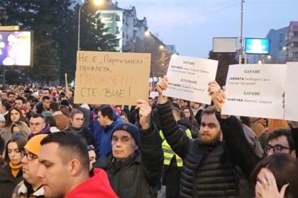 Повеќе од седум часа трае блокадата во Белград на влезовите на зградата…