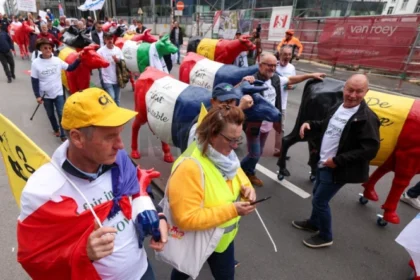 Сточарите, млекопроизводители, одржаа протест пред институциите на Европската Унија во Брисел, барајќи повисоки…