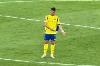 Фудбалерот на Ал Наср, Кристијано Роналдо, помина неколку минути разговарајќи сам со…