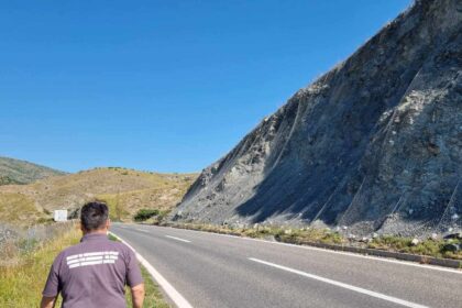 Oпаснa карпа швиси над автопатот Скопје-Велес, на делот после патарината пред Велес,…