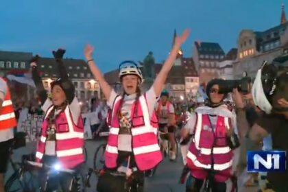 (Видео) Црвен тепих и прегратки – Студентите велосипедисти од Србија пречекани во Стразбур