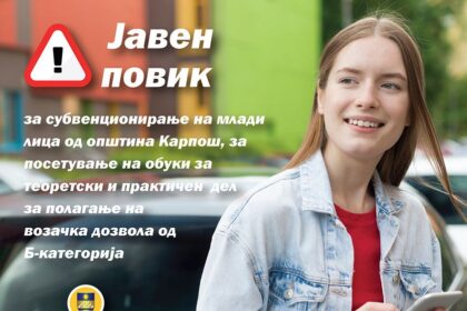 Општината Карпош дава субвенции за млади со наполнети 18 години за полагање возачка дозвола