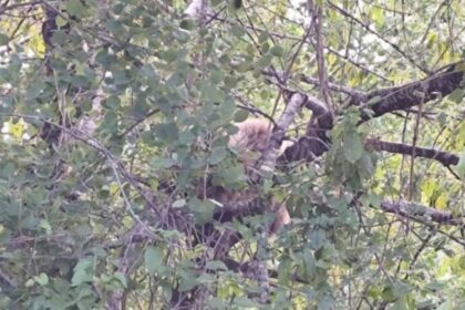 Спасено е мече кое се заглавило на дрво во Маврови Анови